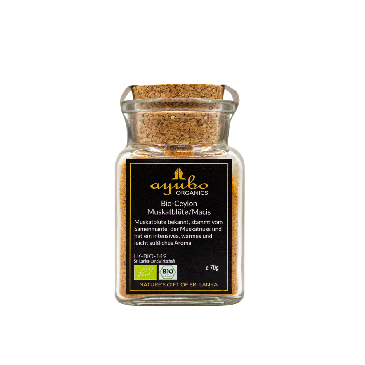 Unsere Muskatblüte stammt direkt aus Sri Lanka, wo sie seit Jahrhunderten für ihre feine Würze und wohltuende Wirkung geschätzt wird.