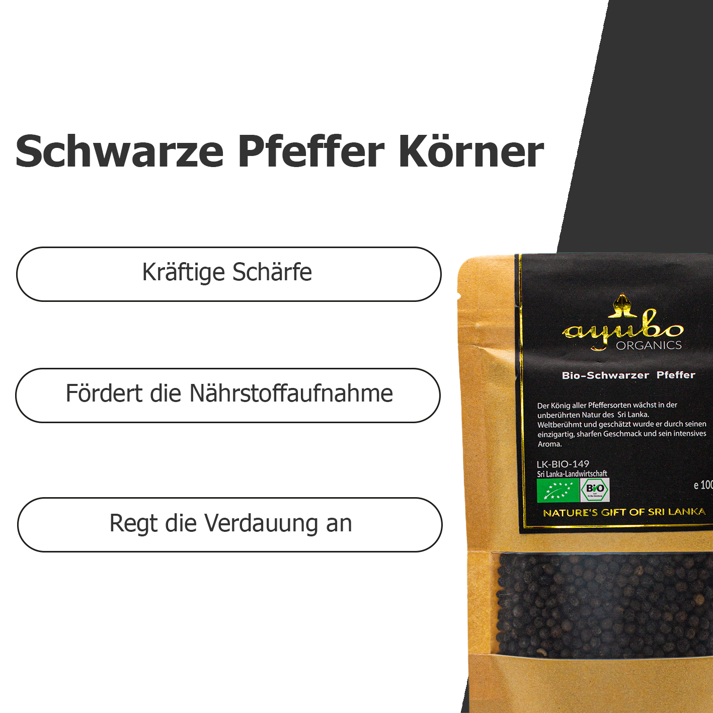 Sie werden sonnengetrocknet, sorgfältig sortiert und kommen direkt aus nachhaltigem Anbau zu dir. Durch den hohen Gehalt an Piperin regen sie die Verdauung an, fördern die Nährstoffaufnahme (z. B. von Curcumin) und wärmen den Körper von innen.