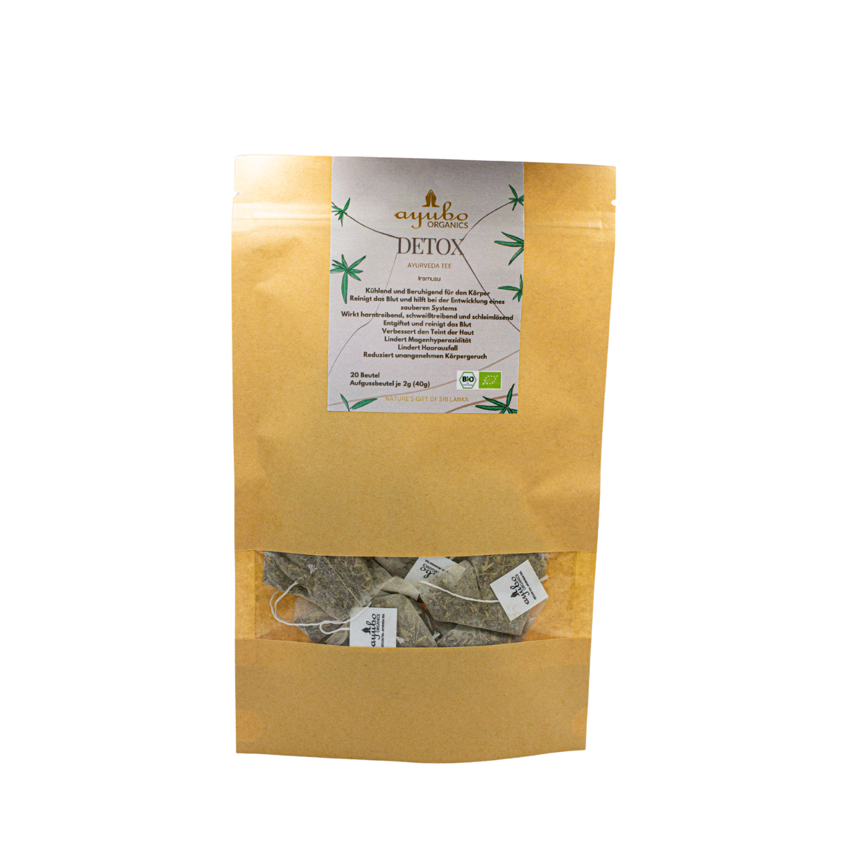 Unser Detox Ayurveda Tee ist eine kraftvolle Kräutermischung aus der ayurvedischen Lehre – entwickelt, um den Körper zu entlasten, den Stoffwechsel zu aktivieren und die innere Balance zu fördern.